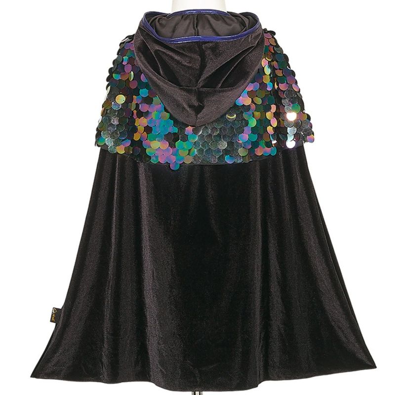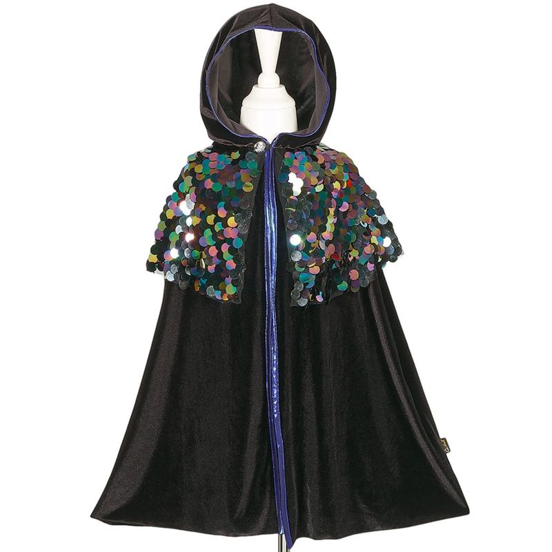 Capa preta com lantejoulas e capuz. Ideal para completar um disfarce de bruxa ou vampiro para o Halloween!