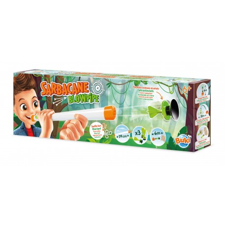 Insira um dardo e sopre com força na zarabatana para atingir os alvos com total segurança.