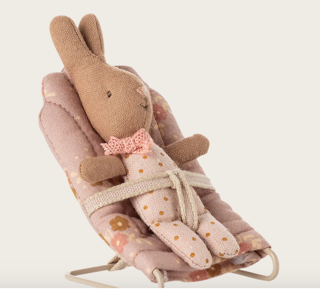 Com esta babá, é fácil colocar seus amiguinhos para dormir. A base é feita de metal e revestida com um tecido maravilhoso. A cadeira se adapta perfeitamente aos meus coelhos/coelhinhos e ratinhos.