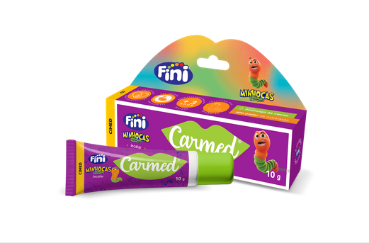 Carmed Fini é um hidratante labial com alto poder de hidratação e evita rachaduras, deixando os lábios macios e saudáveis. Incolor com aroma de Fini Minhocas.