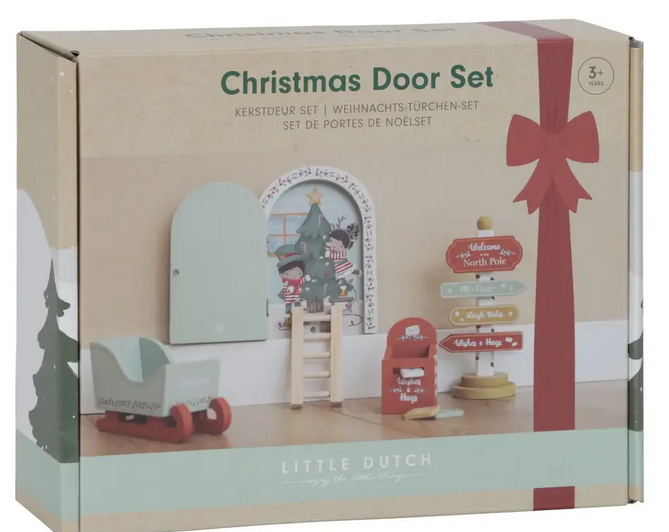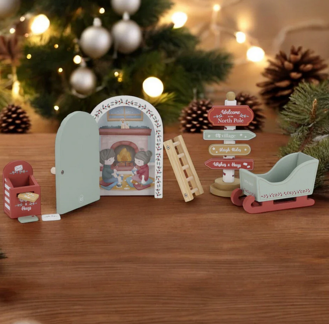 Adicione um toque de diversão natalicia à sua casa com o Portal de Natal com acessórios! Com este divertido conjunto, as crianças podem criar a sua própria cena de Natal. Coloque a porta com ilustração dupla-face sobre um rodapé e acrescente os demais elementos, como uma adorável caixa de correio com correspondência de Natal, um mini trenó, degraus para a porta e uma divertida placa de sinalização. Deixe a criatividade fluir e curtam juntos o clima festivo do Natal.