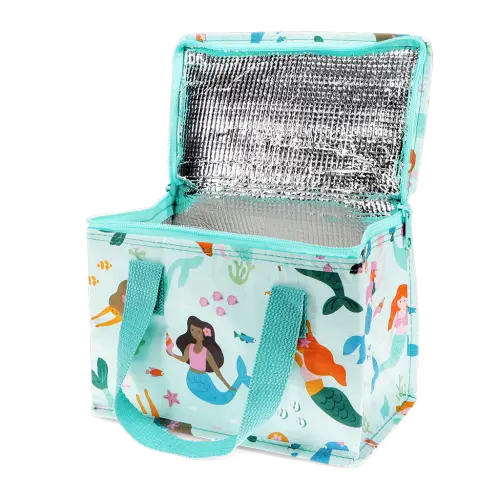 Esta linda lancheira de sereia possui revestimento interno de alumínio para isolamento térmico, mantendo os lanches e bebidas das crianças frescos por horas. Ideal para lanches escolares, piqueniques ou qualquer aventura em movimento.