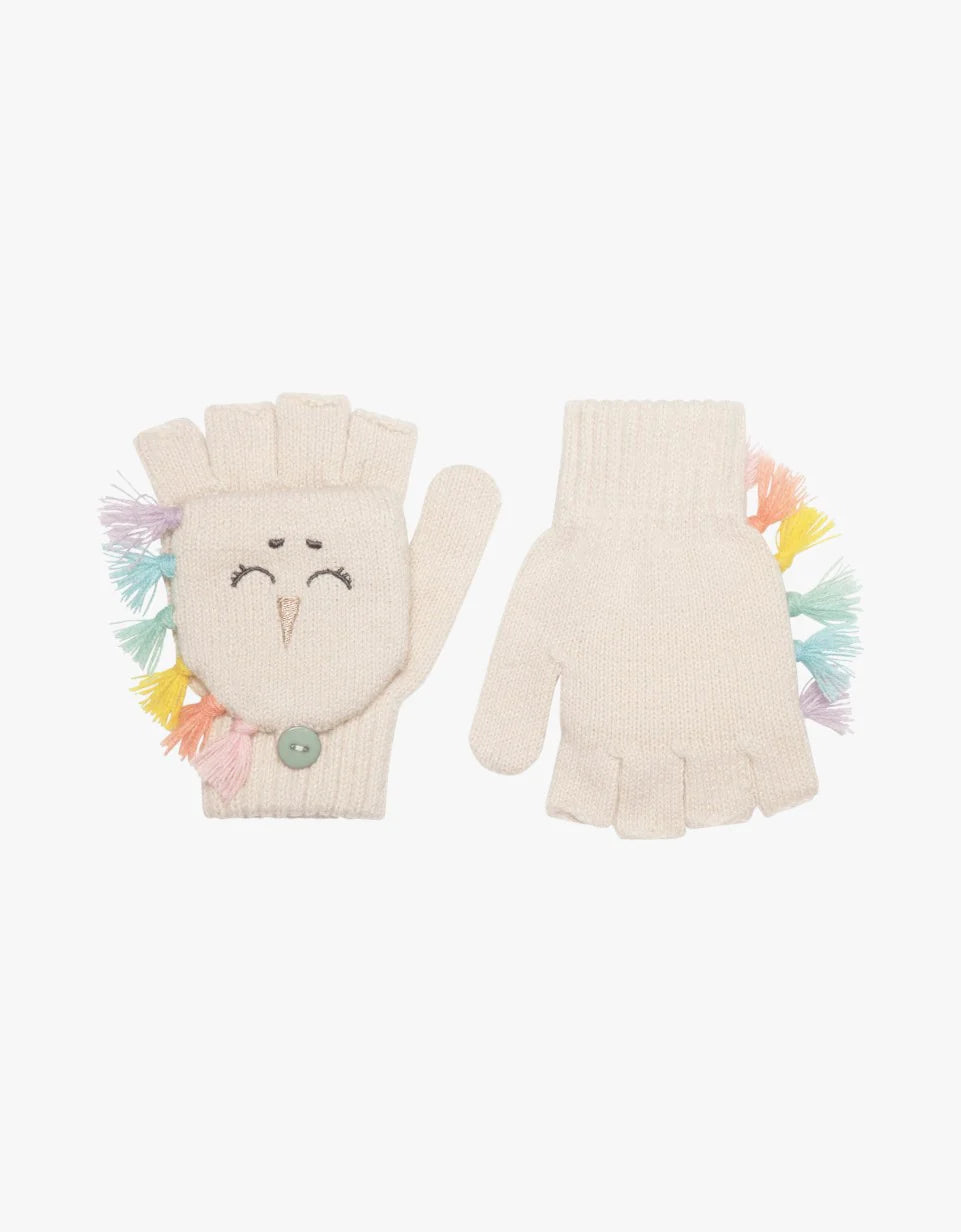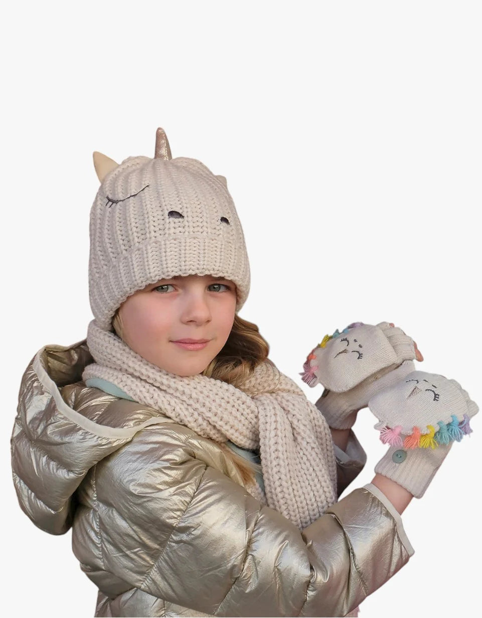 Luvas unicórnio arco-íris com um rosto bordado encantador, um chifre dourado brilhante e uma juba de tufos arco-íris. Luvas sem dedos com uma capa forrada a lã que pode ser fechada com um botão quando não estão a ser utilizadas, e um polegar incorporado. Perfeitas para se manter quente em todas as suas aventuras mágicas!