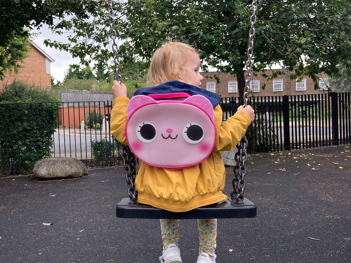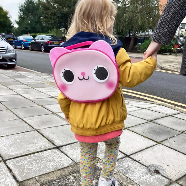 A mochila de PVC infantil perfeita! Adicione um pouco de diversão à sua viagem com este companheiro de gato sorridente rosa, é o melhor lugar para guardar todos esses pedaços estranhos, além de ser limpável e prático também! O gato apresenta um rosto feliz, bochechas rosadas e orelhas de feltro. Basta escrever o seu nome na etiqueta dentro, adicionar as suas coisas e fechar pronto para usar!