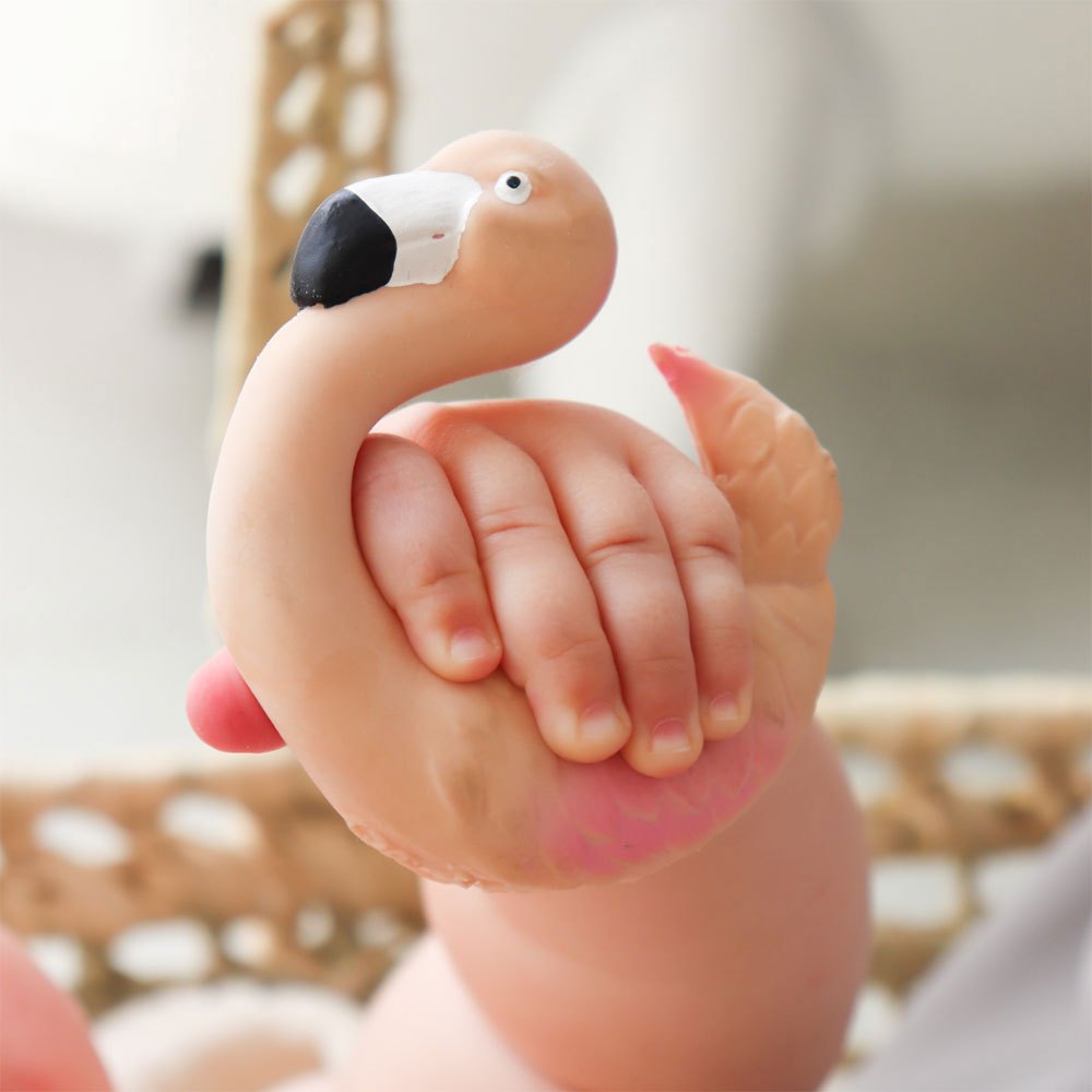 O mordedor apresenta um design fofo e vibrante de flamingo, que irá capturar a atenção do seu bebê e envolver seus sentidos. Seu design multicolorido adiciona um elemento extra de empolgação para estimular o desenvolvimento visual do seu bebê. O design fino e leve do mordedor garante que seja fácil para o seu bebê segurar e manobrar, perfeito para suas pequenas mãos.
