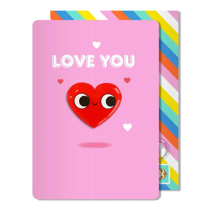 Este adorável cartão de felicitações apresenta um íman de PVC em forma de coração vermelho que pode ser facilmente removido. Perfeito para enviar a alguém para dizer que está a pensar nela e que a ama muito.