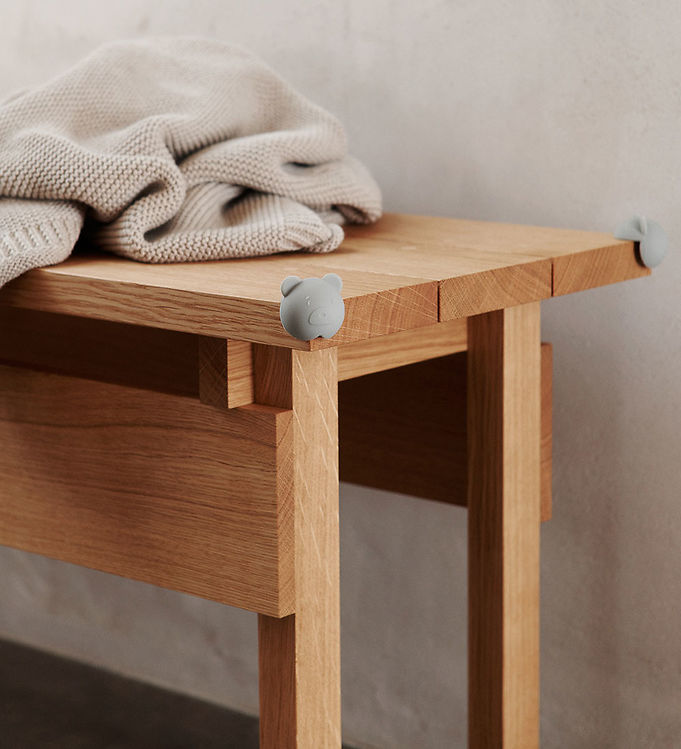 Protetor de canto Liewood prático vendido em um 4-Pack na forma de uma cabeça de urso em bege. O protetor de canto Liewood é preso a cantos de, por exemplo, uma mesa ou outro móvel, de modo que os cantos vivos sejam arredondados. O protetor de canto é fixado com fita adesiva e é fácil de instalar.