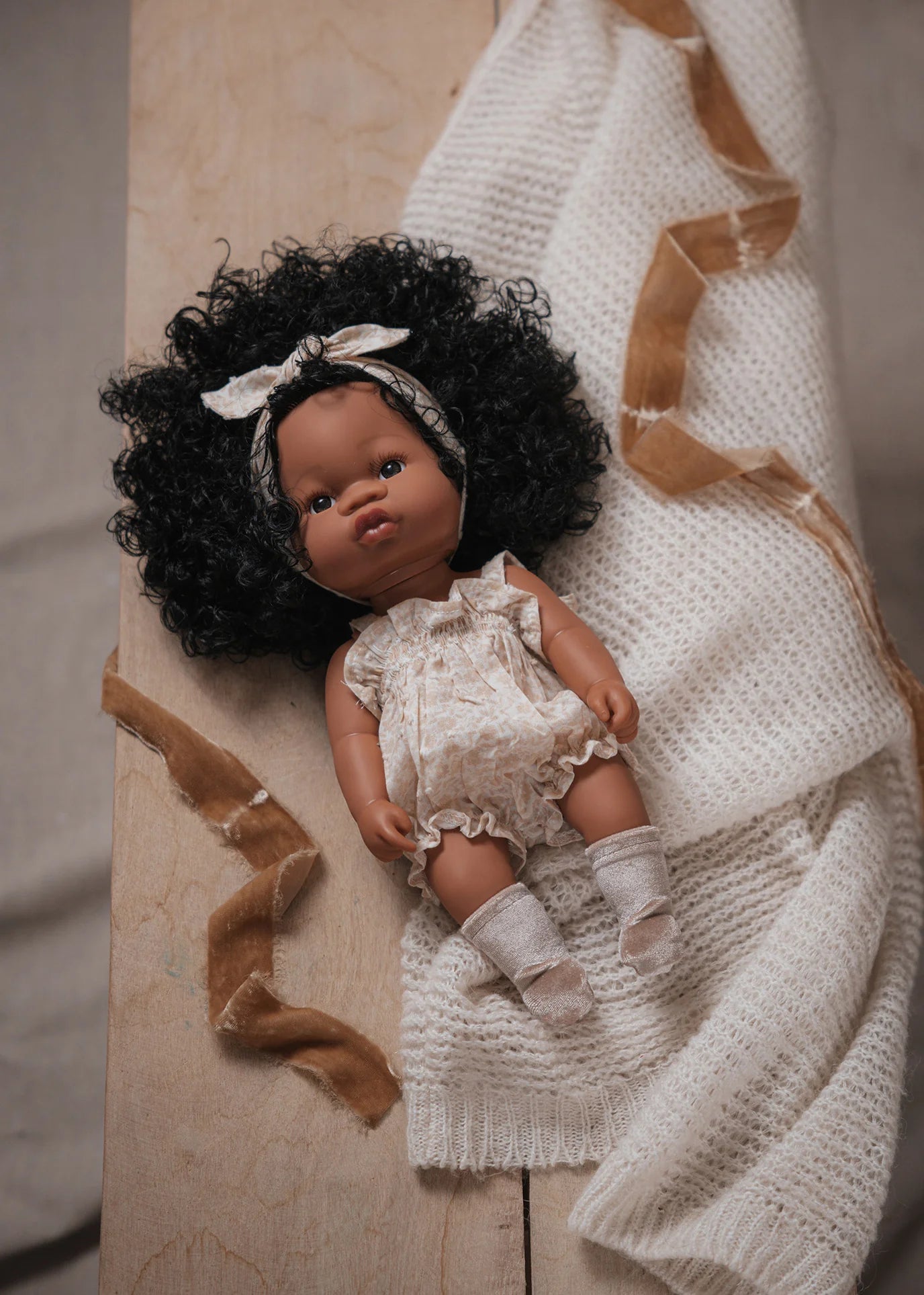 Nossas roupas de boneca são feitas à mão com algodão e materiais orgânicos. Feito à mão. 100% algodão.