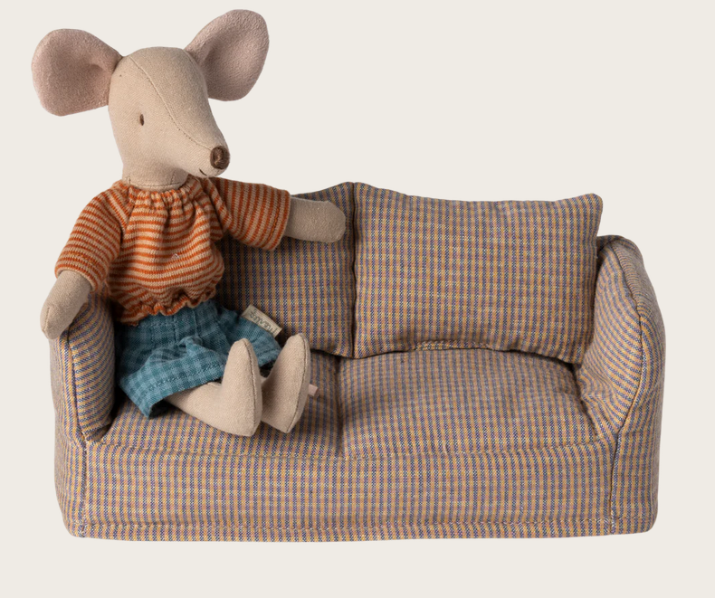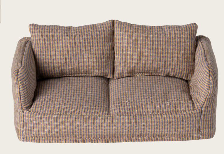 Todas as famílias precisam de um sofá macio para descansar. A família dos ratos pode ficar sentada aqui e se divertir, cabe perfeitamente na sala de estar da Fazenda Buraco do Rato.